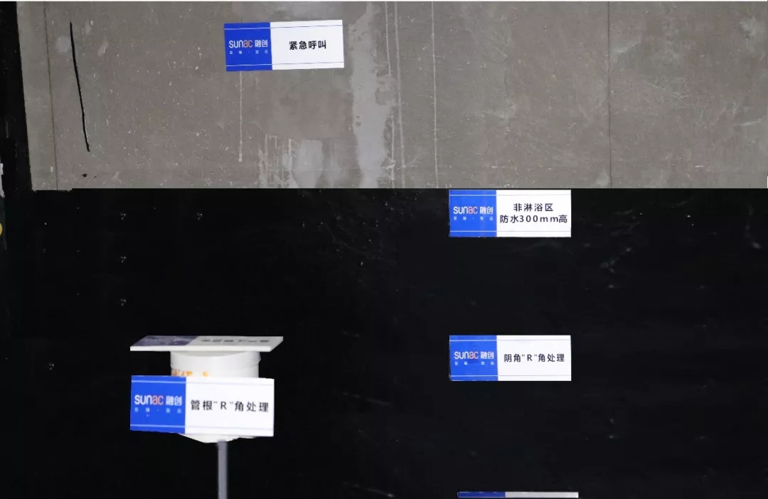 標(biāo)準(zhǔn)區(qū)防水約300mm高、潔具位置防水約1200mm高、墻根陰角處進(jìn)行“R”角處理、衛(wèi)生間門口防水約500mm寬、側(cè)面外延約200mm寬、所有防水工序均進(jìn)行2-3遍……這是海驪在項(xiàng)目防水工序所產(chǎn)出的數(shù)據(jù),完全優(yōu)于行業(yè)現(xiàn)有標(biāo)準(zhǔn),全面杜絕滲漏現(xiàn)象。