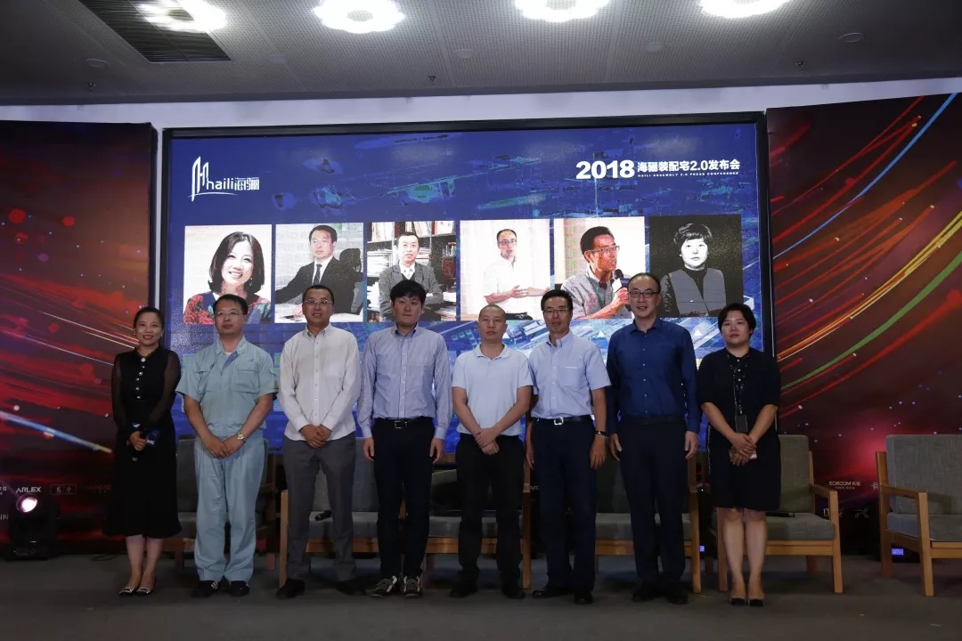 △2018年7月25日,萬(wàn)科采筑平臺(tái)總經(jīng)理都軍(右二)參加海驪裝配宅2.0發(fā)布會(huì)